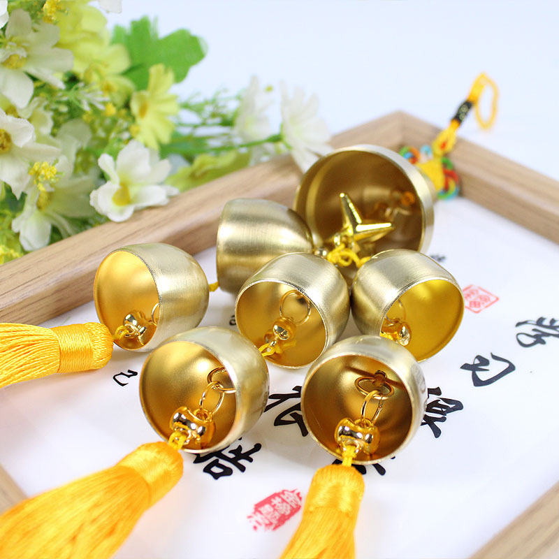 一大六小黄铜风铃家居风水装饰铃高级感盒装礼品黄铜门对门挂饰