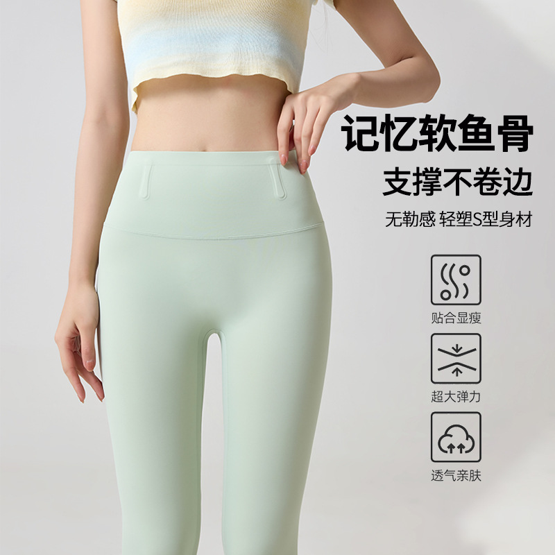 新款奶皮裤lulu瑜伽裤女夏薄款高腰收腹鲨鱼裤外穿凉感骑行防晒裤