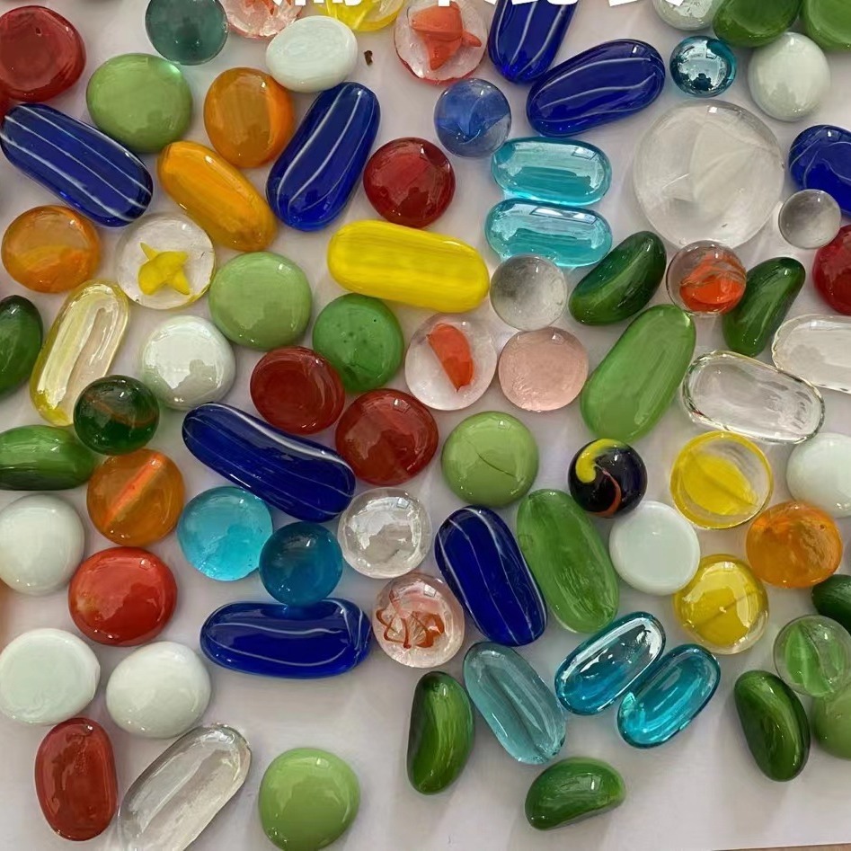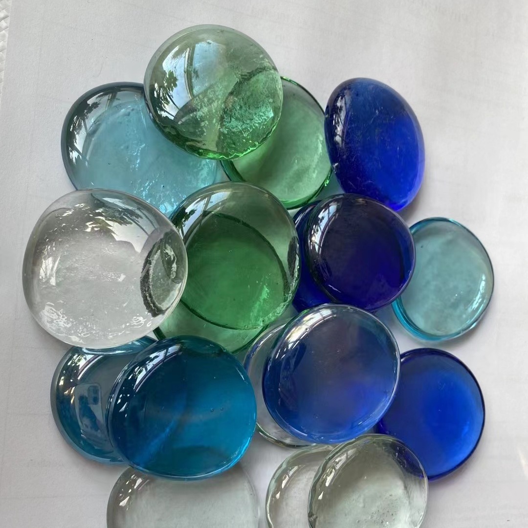 玻璃扁珠现货批发彩色透明玻璃扁珠玻璃圆珠腰果石研磨玻璃球扁珠