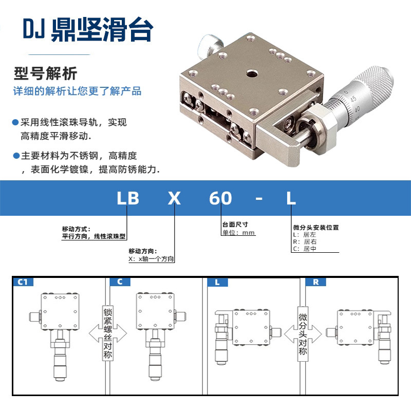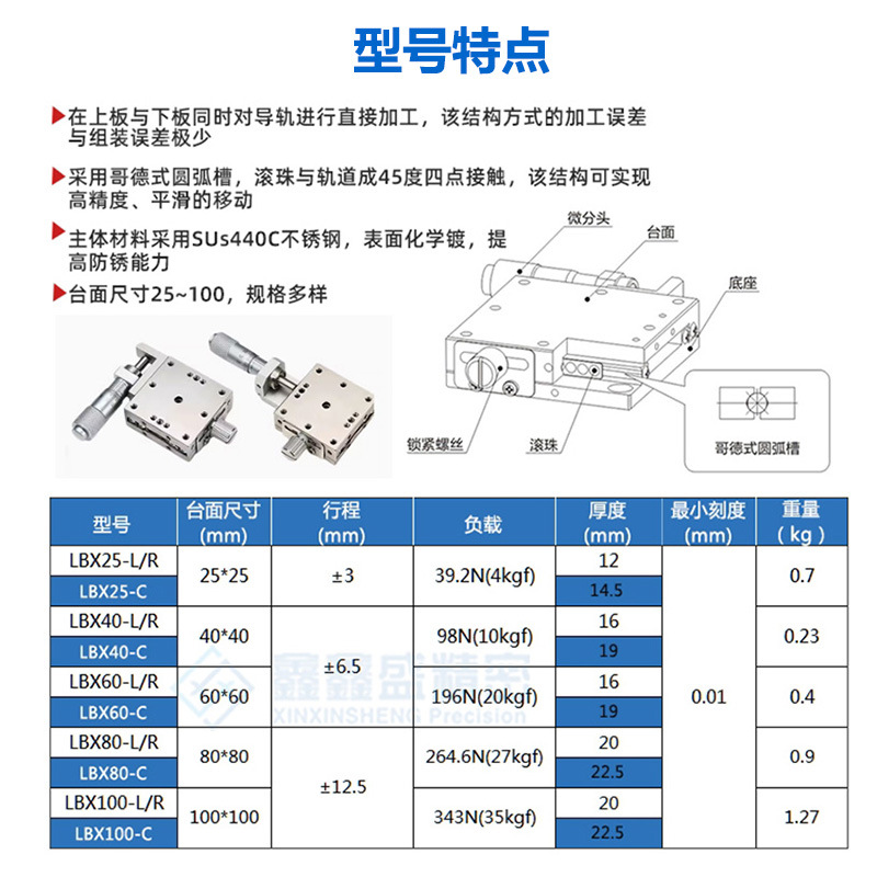 | 外形尺寸 | 40x40/60x60/80x80/100x100 | 适用范围 | 自动化行业、光学邻域、教学仪器精密位移微调 |