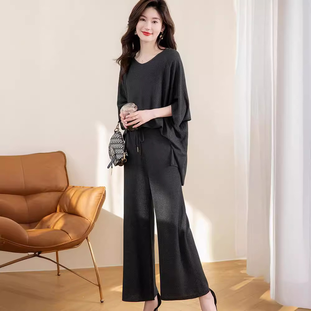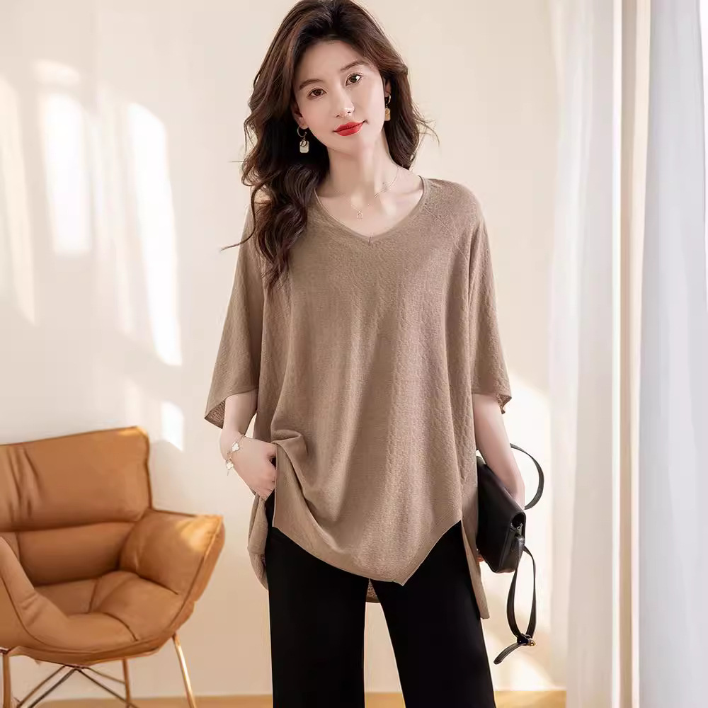 夏季新款冰丝针织衫女t恤女宽松大码女装慵懒遮肚子薄款上衣气质