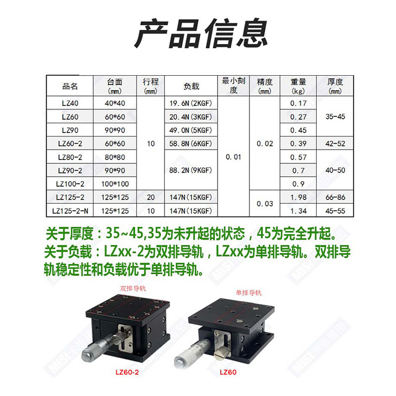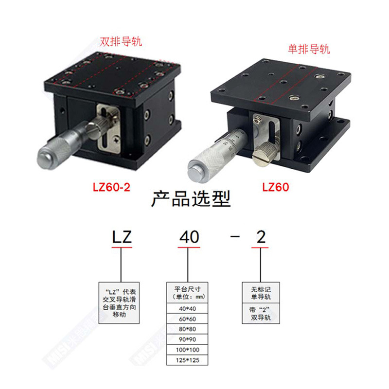 z轴水平升降平台lz40/60/80/90/125-2交叉导轨型手动精密升降滑台