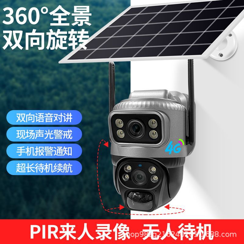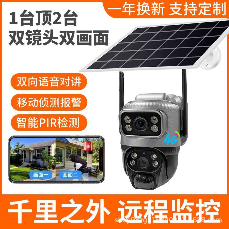 跨境批发V380监控器无线WiF高清家用4G双镜头智能太阳能摄像头