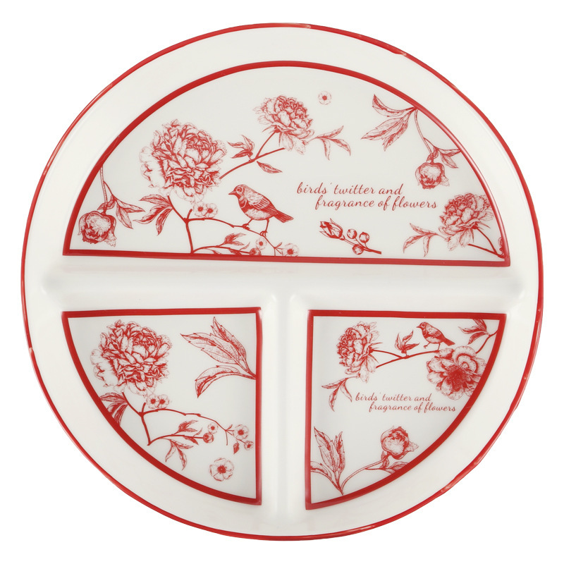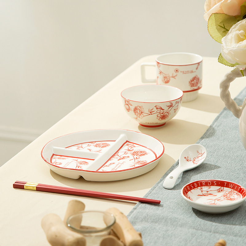 颜色鸟语花香12件套分餐盘红色(一箱10套起批)