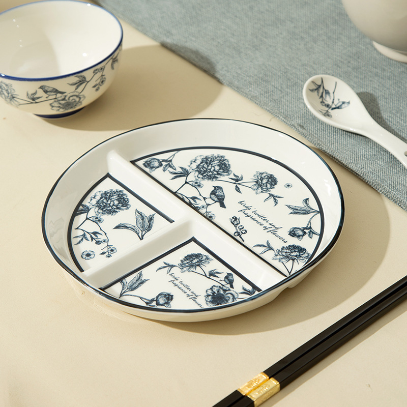 颜色鸟语花香12件套分餐盘蓝色(一箱10套起批)