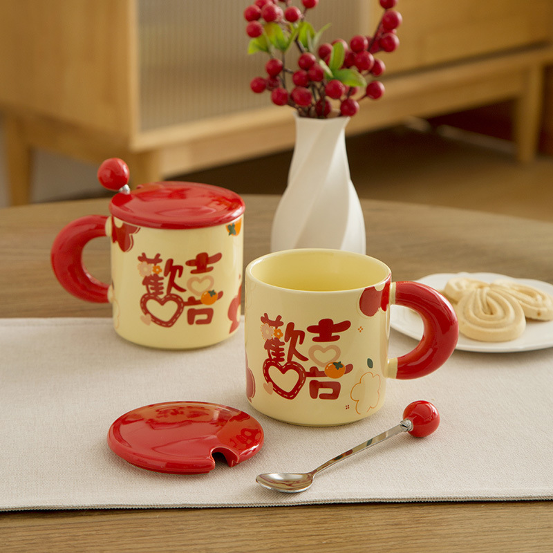 | 颜色 | 欢喜单杯+盖+勺(一箱60套起批) | 颜色 | 欢喜对杯+勺(一箱20套起批) |