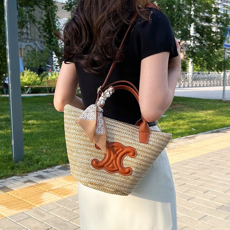 夏新款复古草编包凯旋门沙滩度假包大容量手提菜篮子包托特包