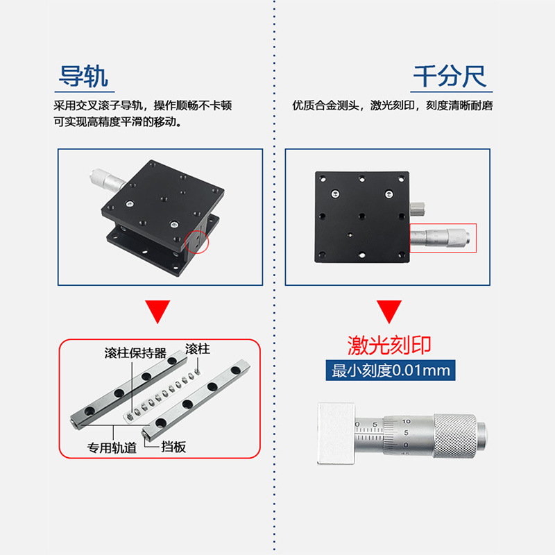 主营产品:手动位移平台千分头交叉导轨型精密微调滑台燕尾槽涡轮蜗杆齿轮齿条型调节平台R轴旋转滑台z轴升降平台