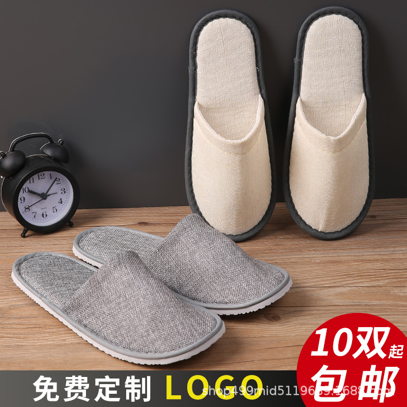 一次性便携麻布拖鞋家用酒店民宿四季印花布拖鞋透气拖鞋可印logo