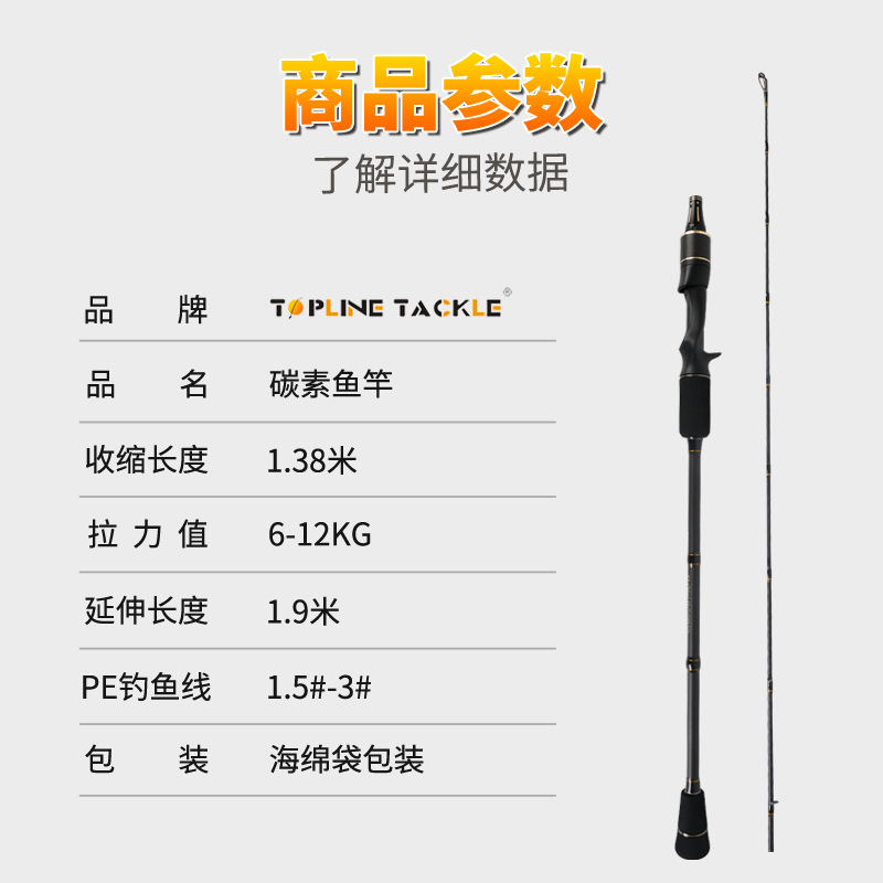 实心轻型慢摇铁板竿一节半船竿1.9m海钓路亚竿海杆钓鱼竿批发处理