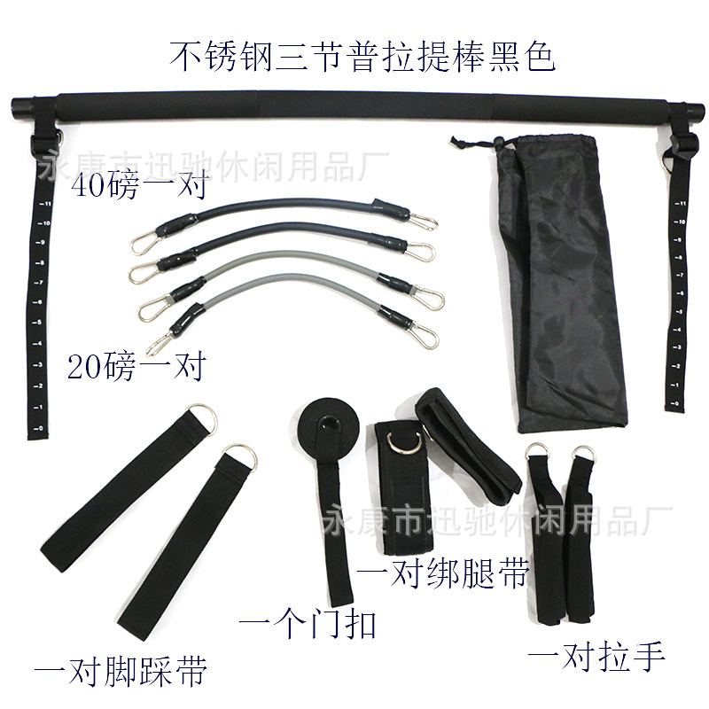 不锈钢普拉提棒瑜伽三节多功能健身拉力器阻力深蹲拉背阻力训练