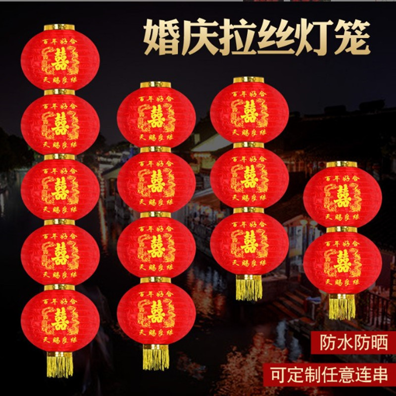 定制结婚灯笼龙凤喜字拉丝连串院子布置装饰户外绸缎大红圆长灯笼