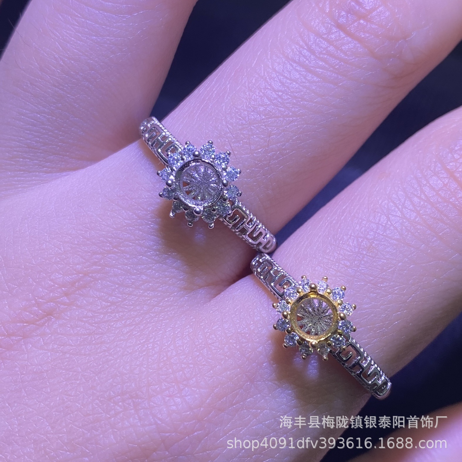 s925纯银简约戒指女银托翡翠缅料蛋面高级感空托diy戒托配饰批发