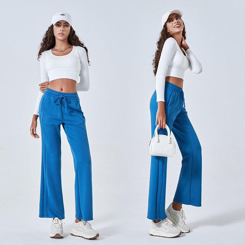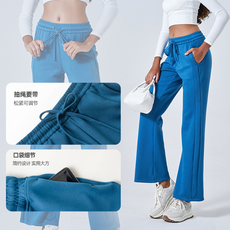 秋冬新款空气层纯棉宽松简约运动长裤女抽绳显瘦双口袋瑜伽健身裤