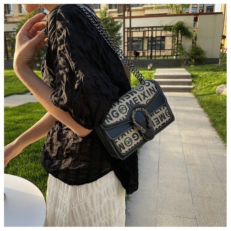 高级感新款包包女包时尚小方包休闲洋气百搭单肩包斜跨网红链条包
