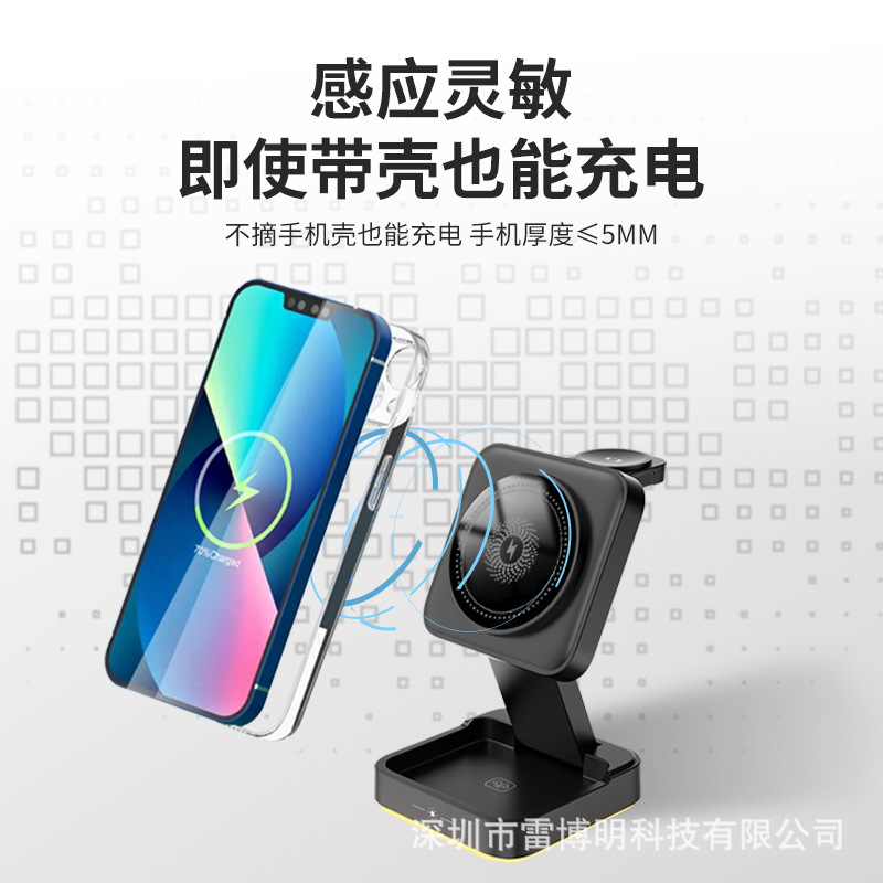 新立式折叠触摸小夜灯三合一磁吸无线快充适用苹果手机无线充电器