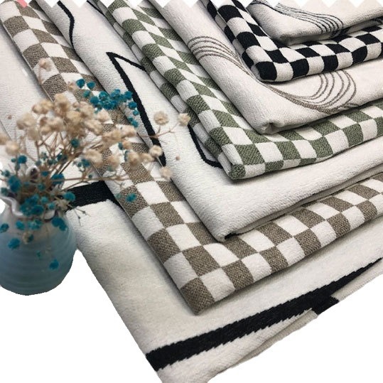 现货几何线条格子抱枕沙发巾垫2.8/3.2米宽幅雪尼尔色织提花面料