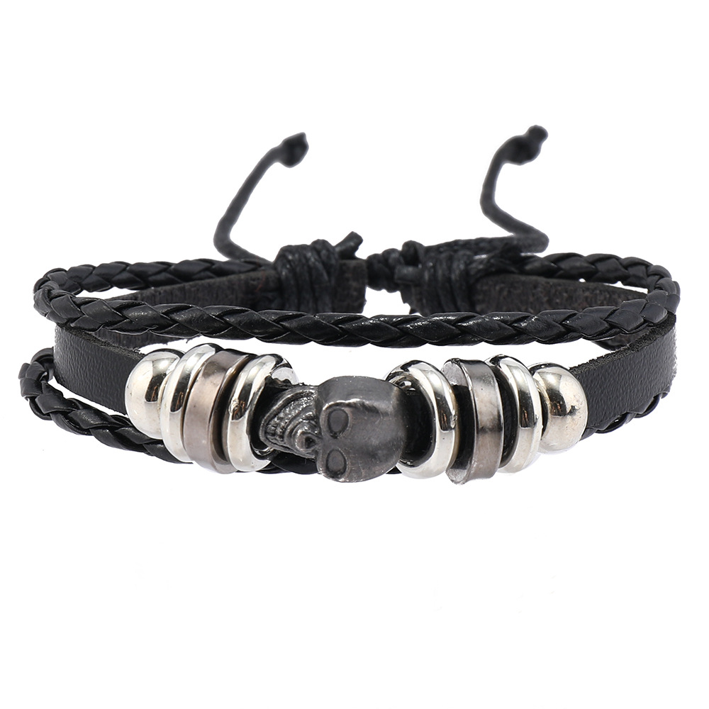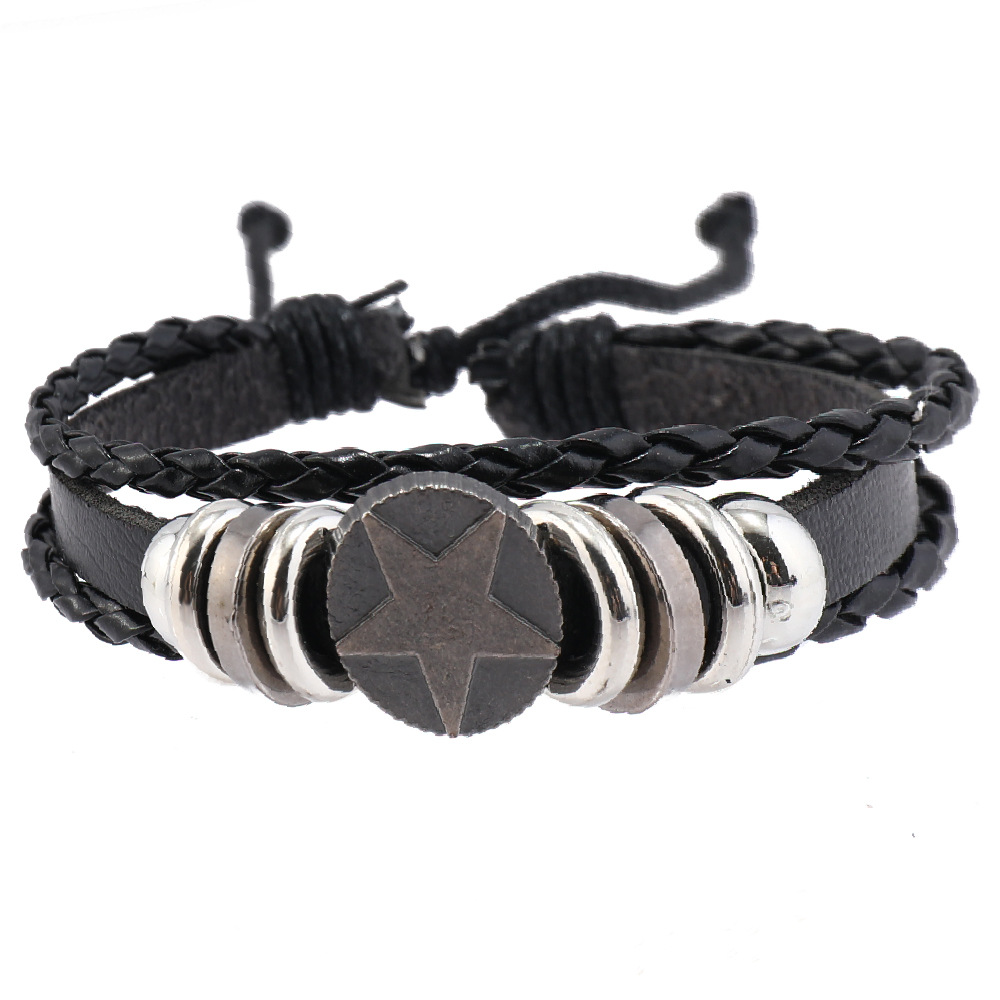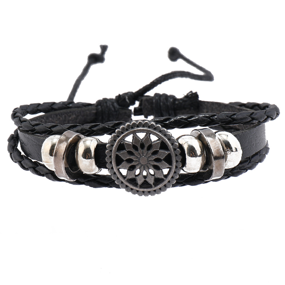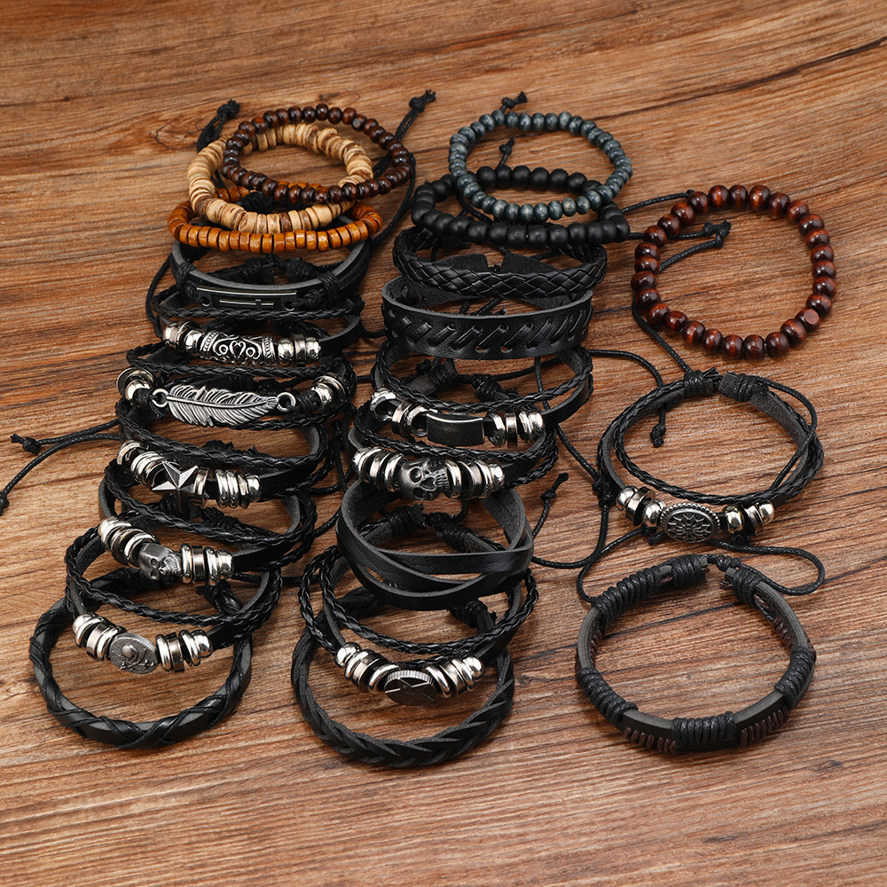 跨境新款22件套多层编织手链 生命之树黑色皮革手绳厂家批发饰品
