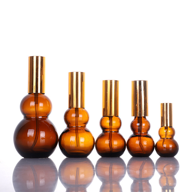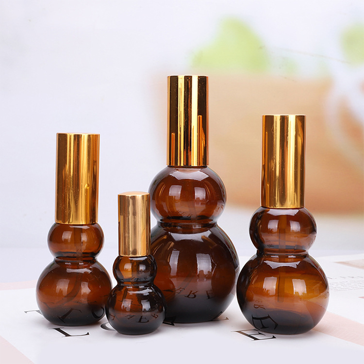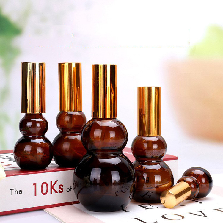 厂家批发茶色避光双葫芦滚珠精油瓶加厚玻璃瓶子旅行分装瓶现货