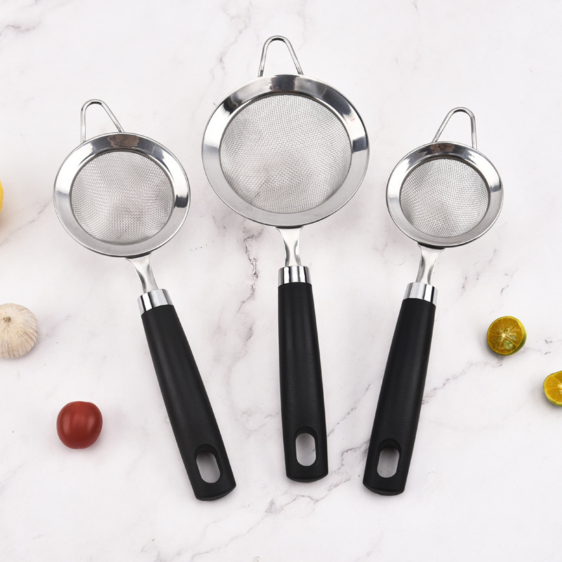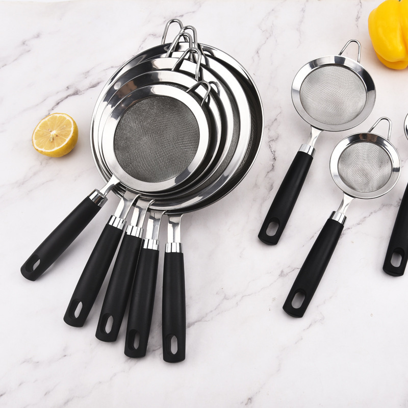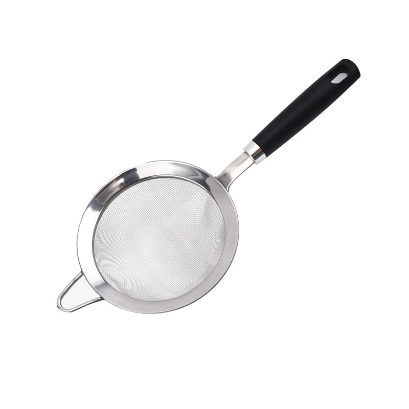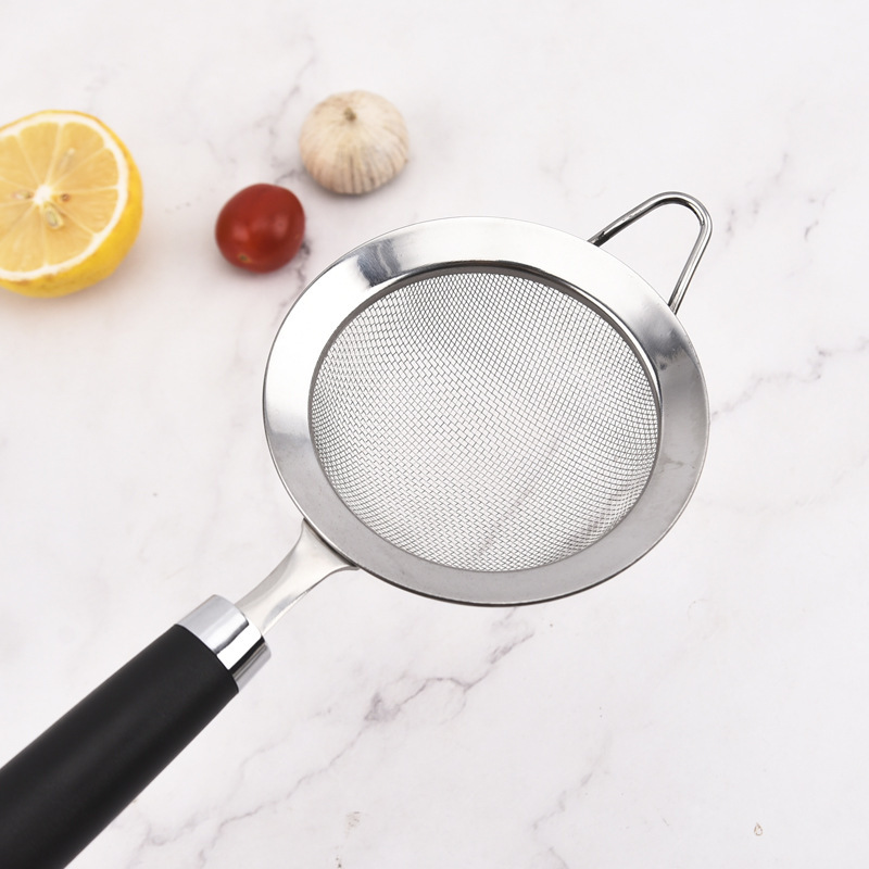 不锈钢网勺油格酒店厨房家用过滤漏勺网漏烘焙手持面粉筛尖耳宽边