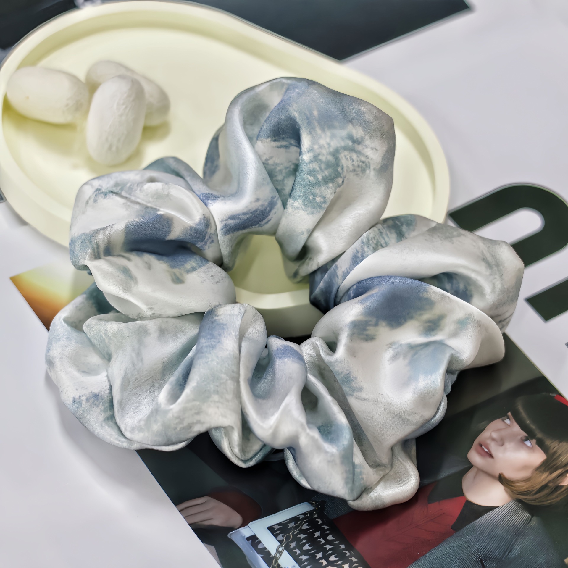 国风发圈批发中式风竹叶水墨女网红2024新款扎头绳丸子大肠发圈