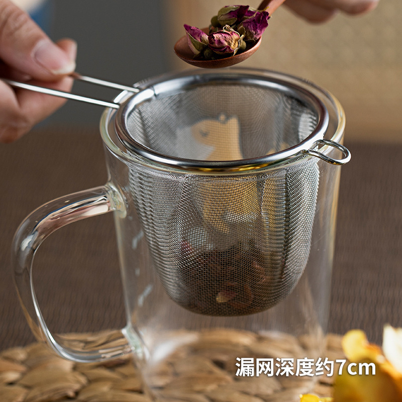 不锈钢过滤茶漏家用茶叶单耳过滤网茶具配件可悬挂滤渣器咖啡滤