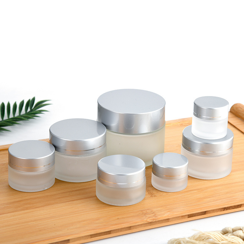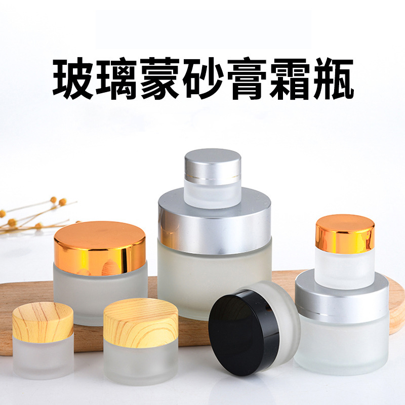 透明玻璃膏霜瓶蒙砂膏体瓶磨砂眼霜瓶100g木纹盖化妆品分装瓶现货