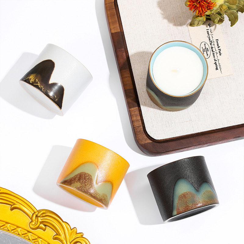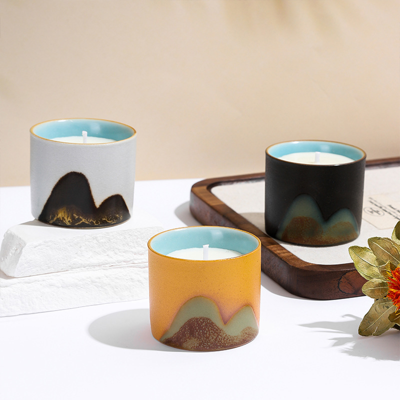 跨境国风香薰蜡烛江山图陶瓷杯植物蜡香氛蜡烛室内空气清新蜡烛杯