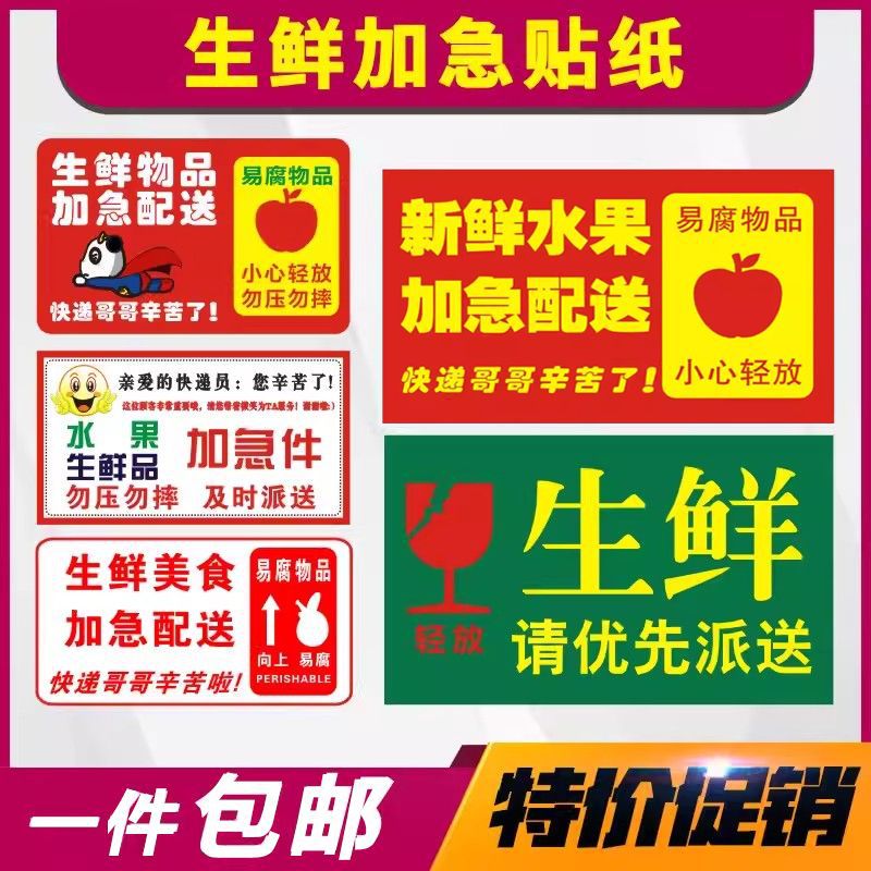 现货生鲜速递不干胶水果加急派送件生鲜提示快递贴加急标签贴定做