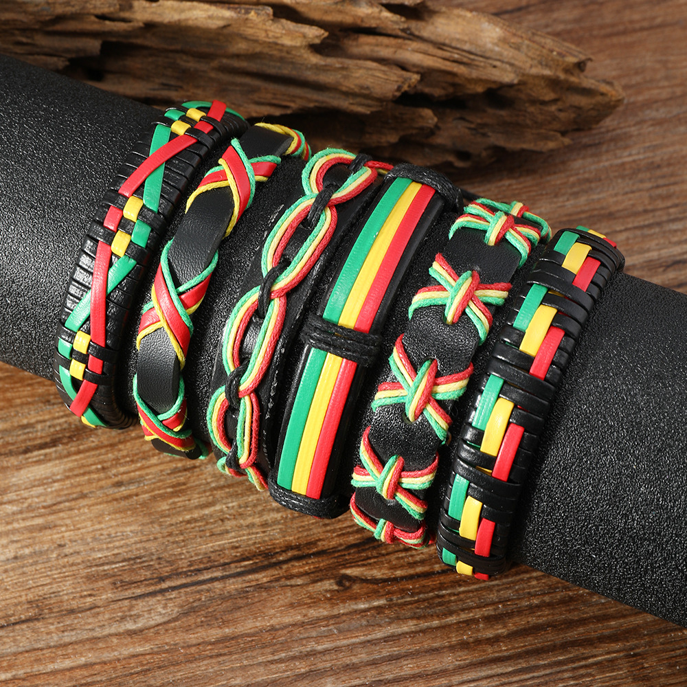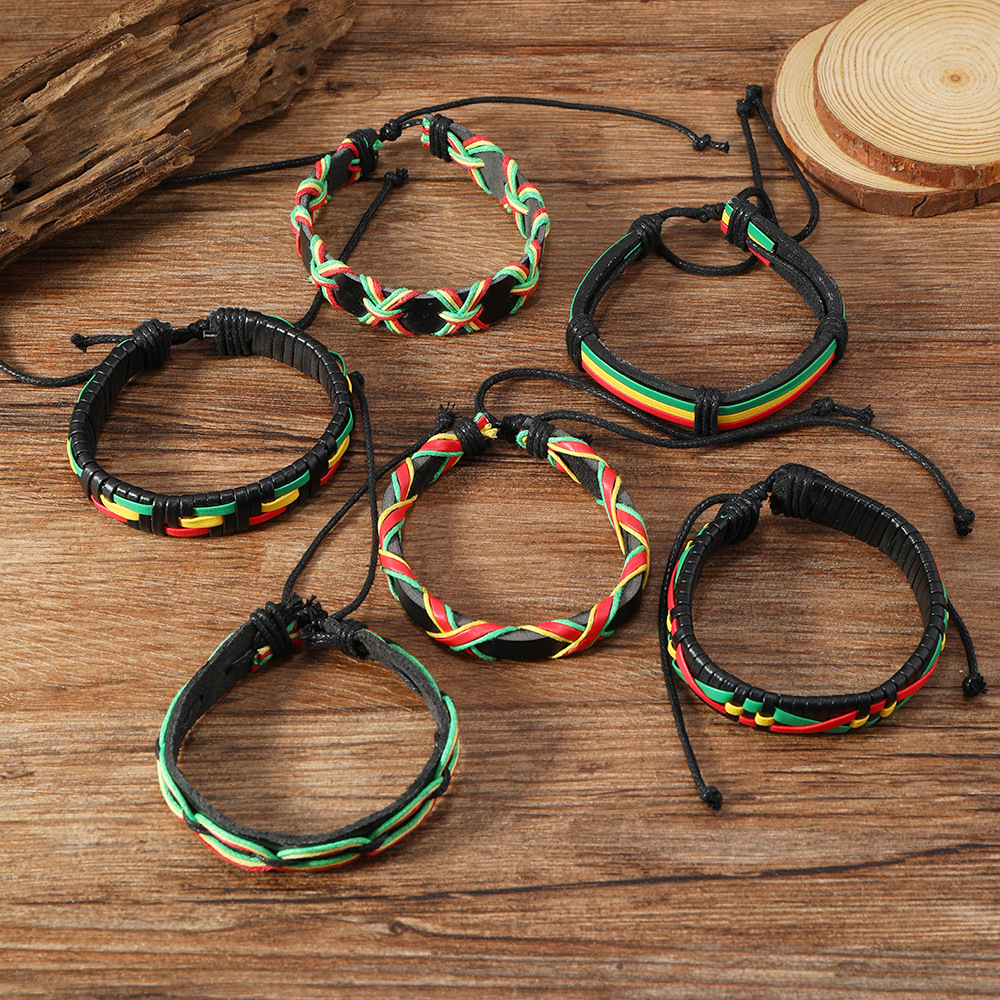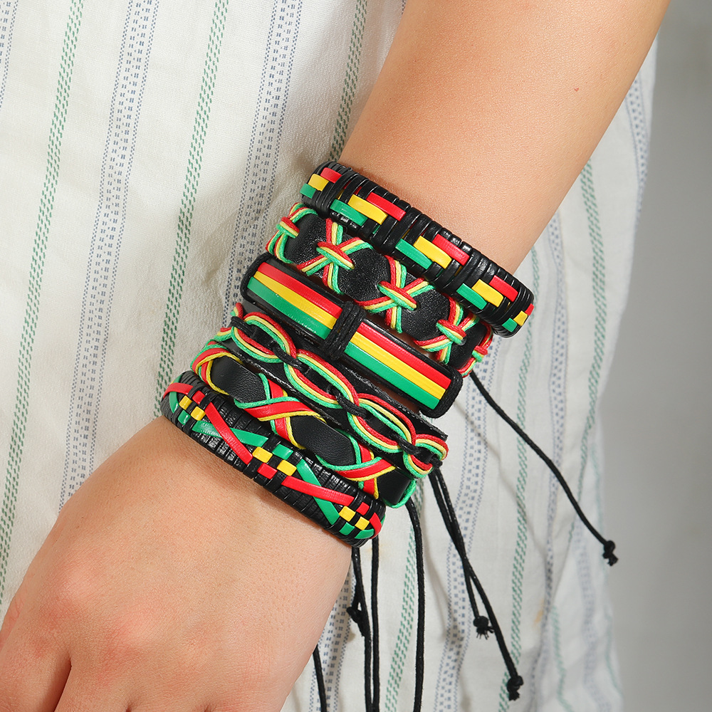 跨境电商热销休闲运动风撞色皮革编织手绳 亚马逊diy男士手链套装