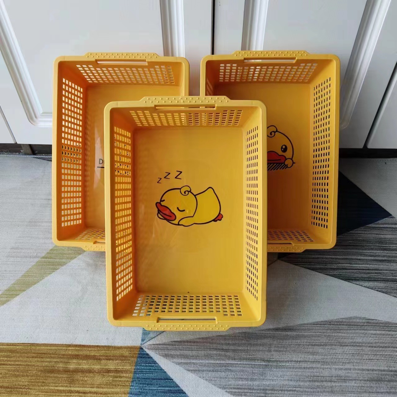 厂家直销加大加厚长方形收纳筐2811黄鸭长方框桌面收纳筐塑料筐