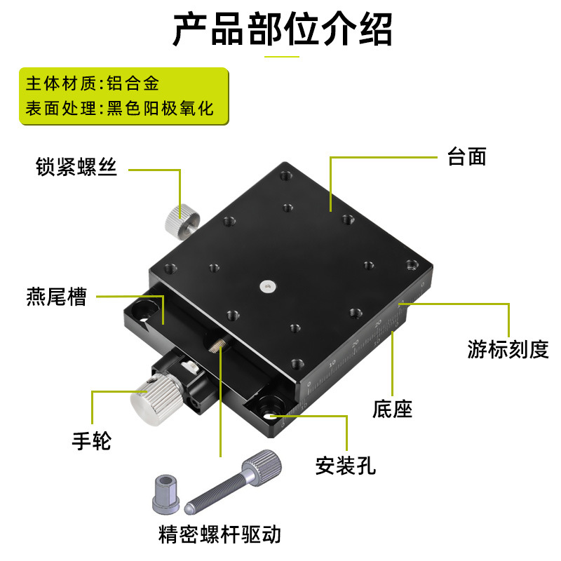主营产品:手动位移平台千分头交叉导轨型精密微调滑台燕尾槽涡轮蜗杆齿轮齿条型调节平台R轴旋转滑台z轴升降平台