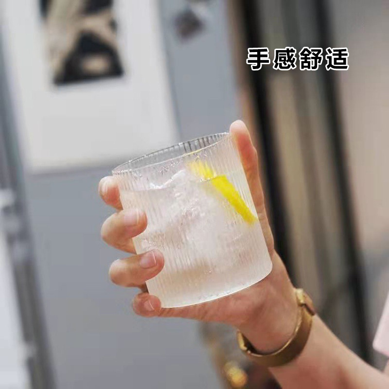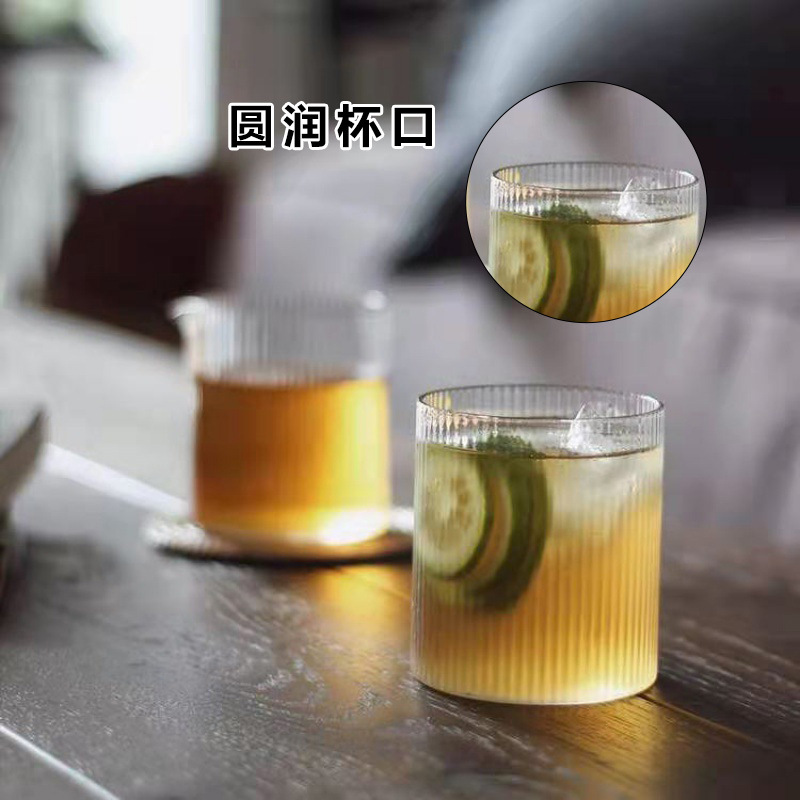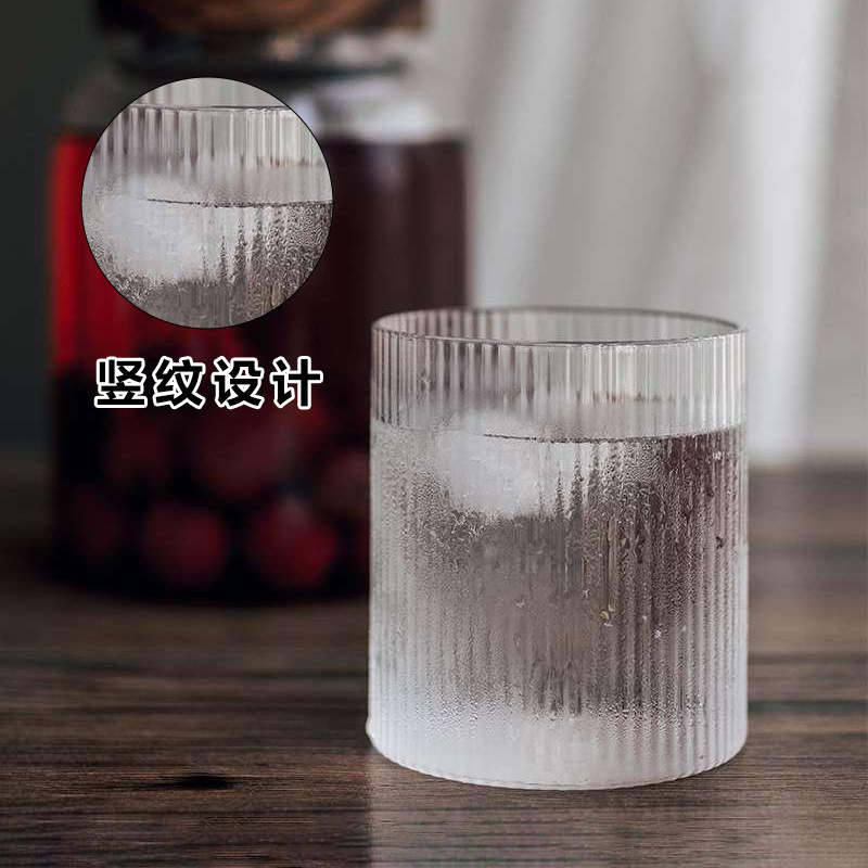 日式竖纹杯透明锤纹高硼硅玻璃杯酒杯咖啡杯饮料杯家用竖纹玻璃杯