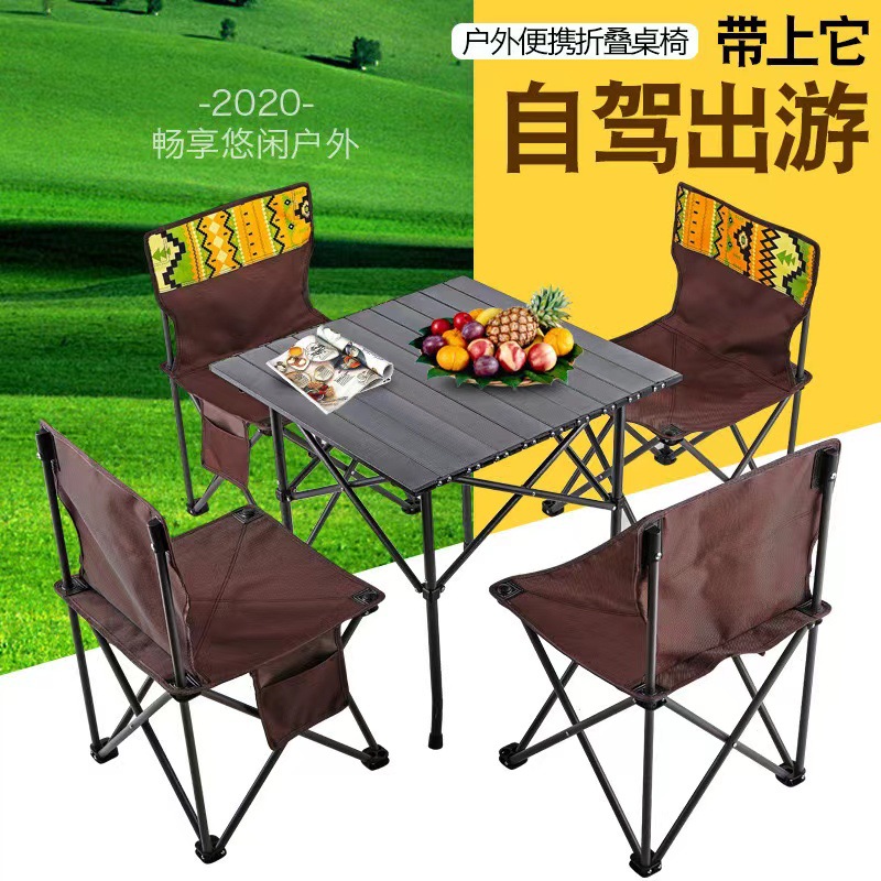 户外便携折叠桌椅 折叠桌椅 野餐露营月亮椅铝合金蛋卷桌套装