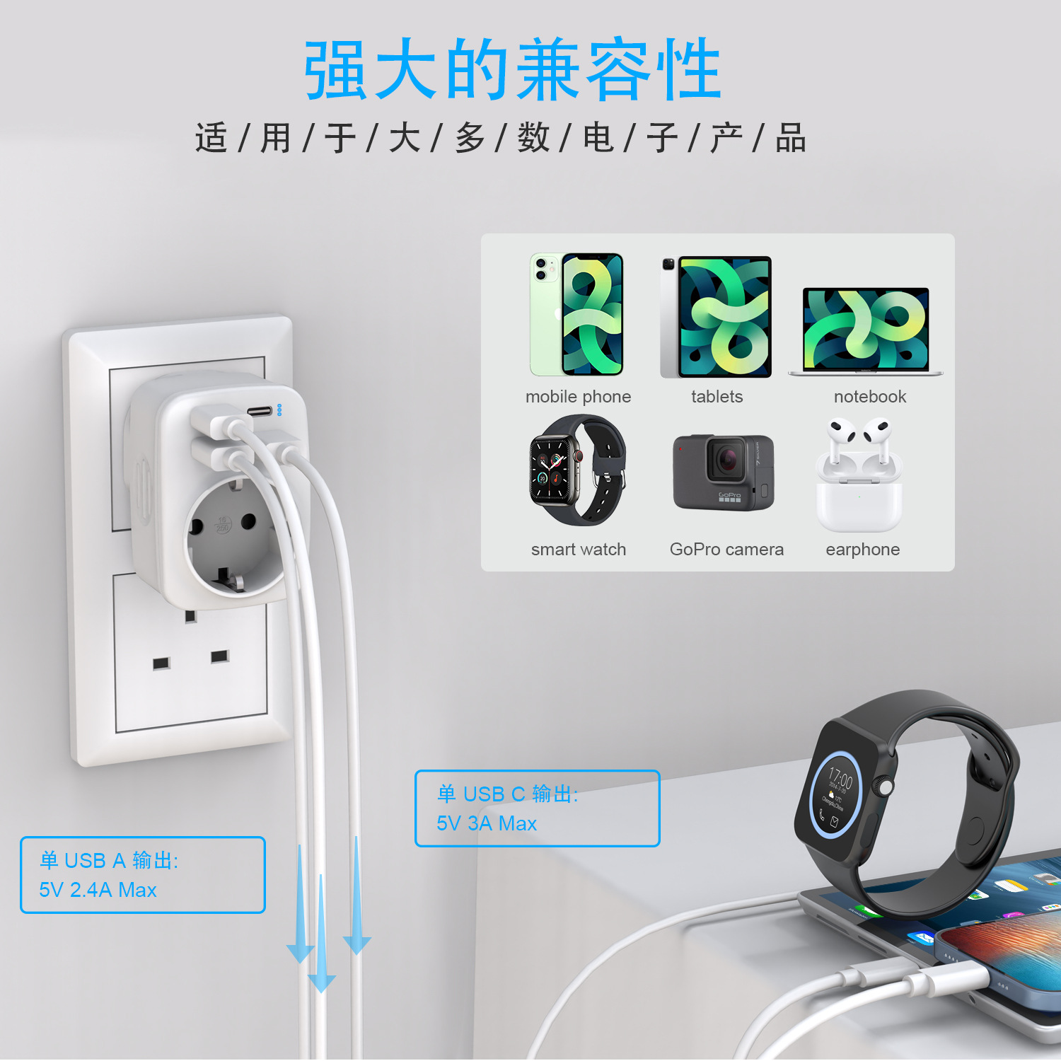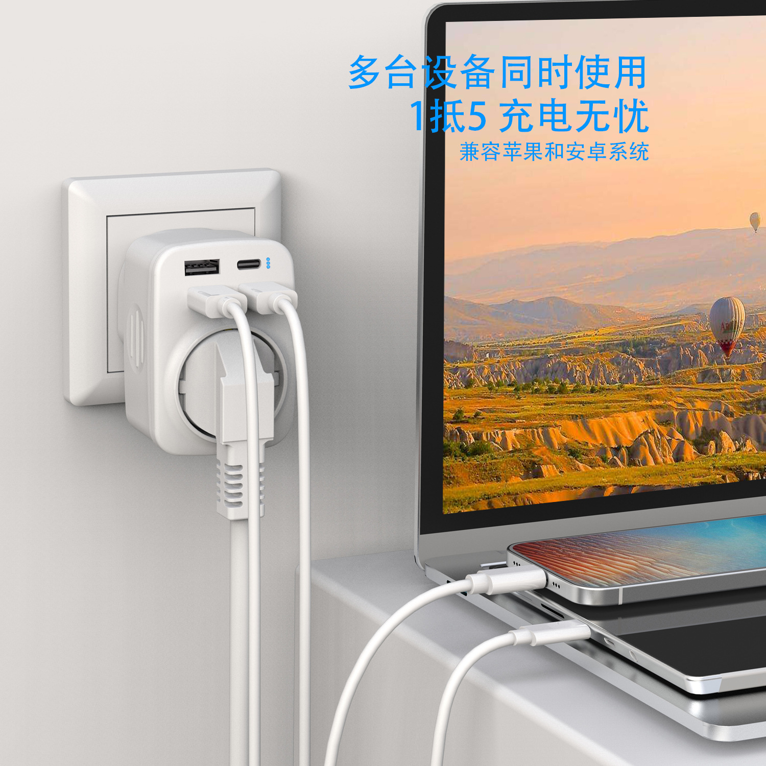 跨境批发欧规转换插头USBtypec出国旅游电源转换插头多功能插座