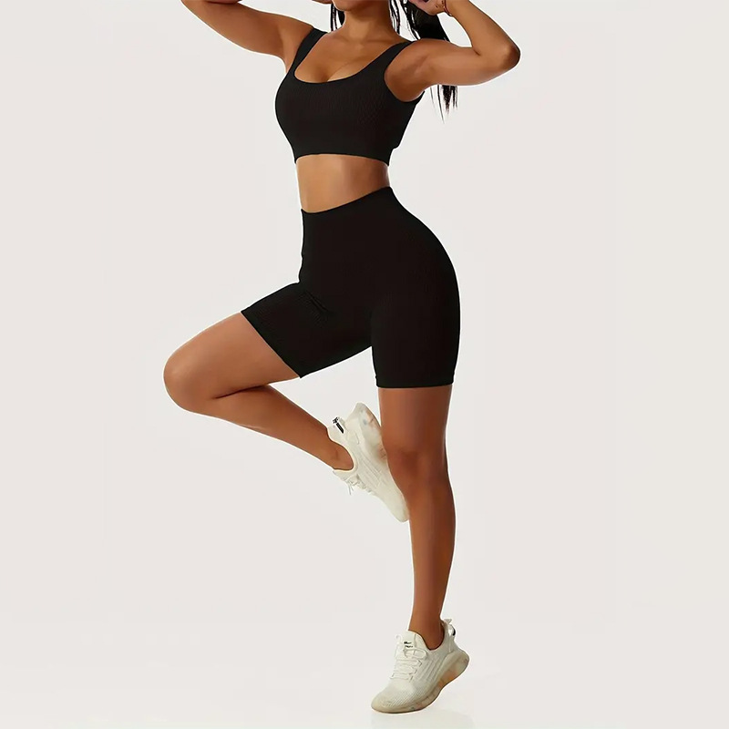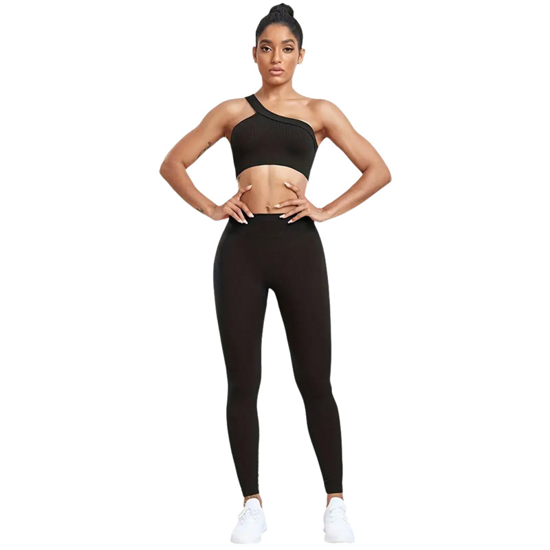 瑜伽裤女健身服款美臀运动健美裤蜜桃臀罗纹三件套紧身运动长裤