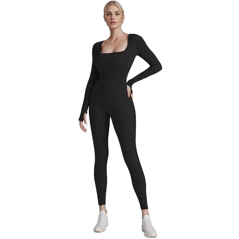 跨境秋冬螺纹长款连体瑜伽服女速干跑步健身运动连体衣长袖瑜伽裤