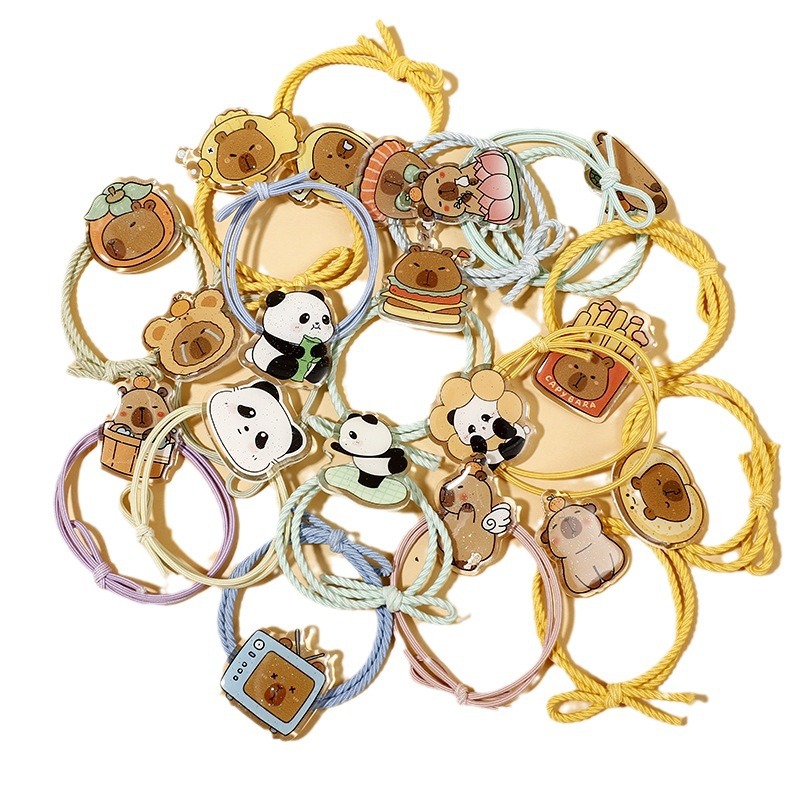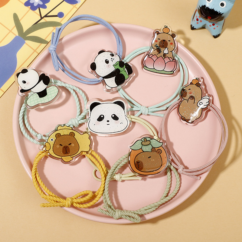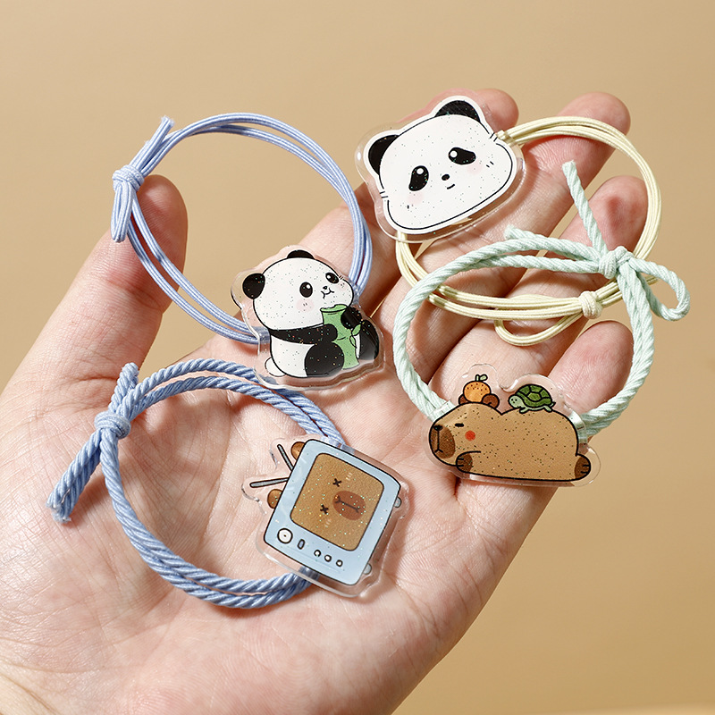 超韩可爱卡通亚克力片片熊猫头绳水豚卡皮巴拉发圈高弹力少女发饰