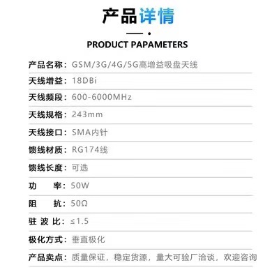 信号增强高增益4G5G路由器无线网卡随身WiFi吸盘铜棒天线