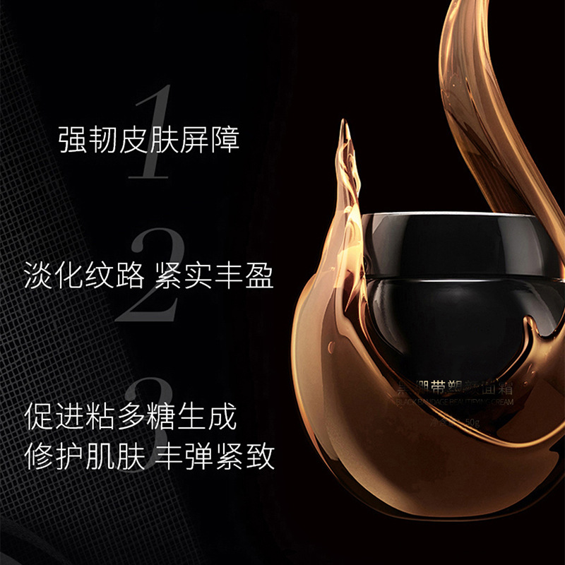 厂家供应黑绷带塑颜面霜活颜呵护晚霜滋润紧致高保湿嫩肤修护面霜