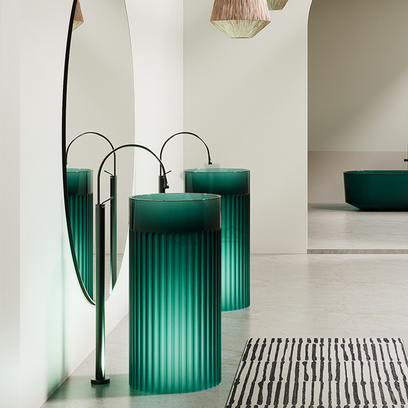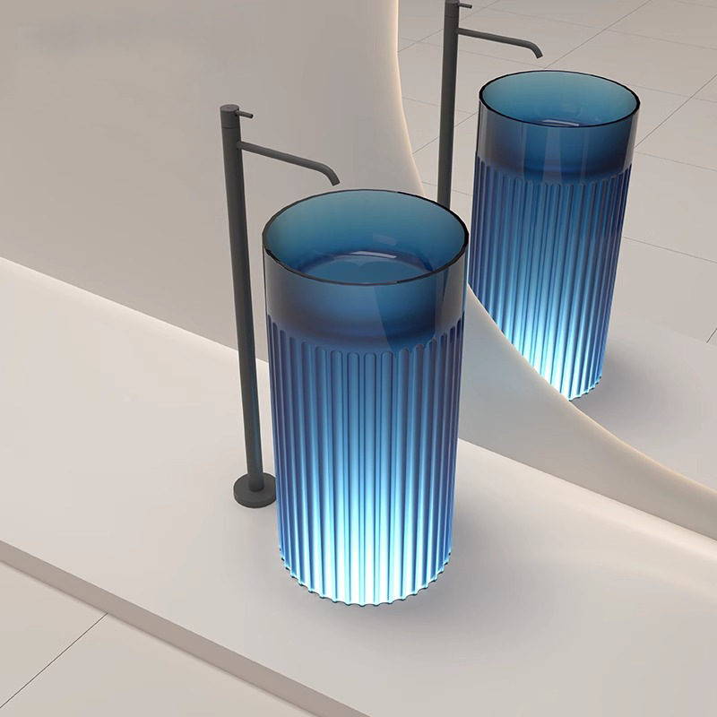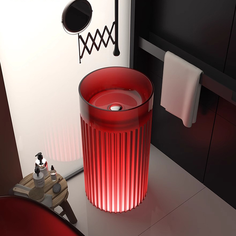 一体落地式透明树脂洗手盆水晶氛围洗脸盆洗漱台浴室立柱盆洗手池