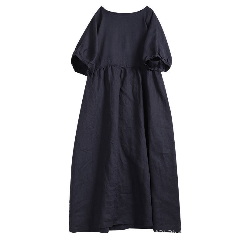 胖mm大码连衣裙短袖减龄可爱娃娃裙宽松文艺森系棉麻女2023夏裙子