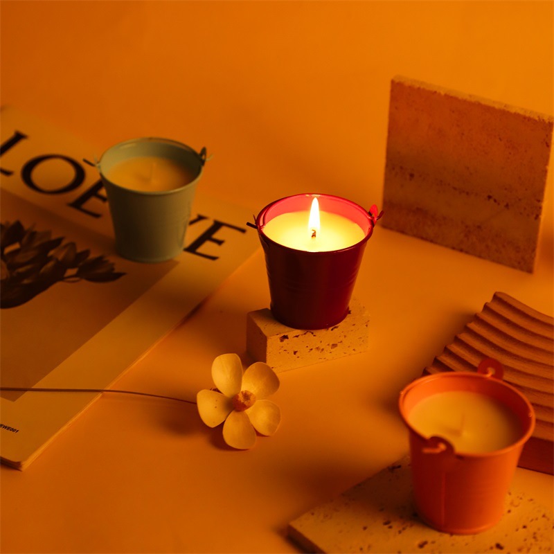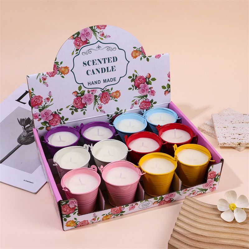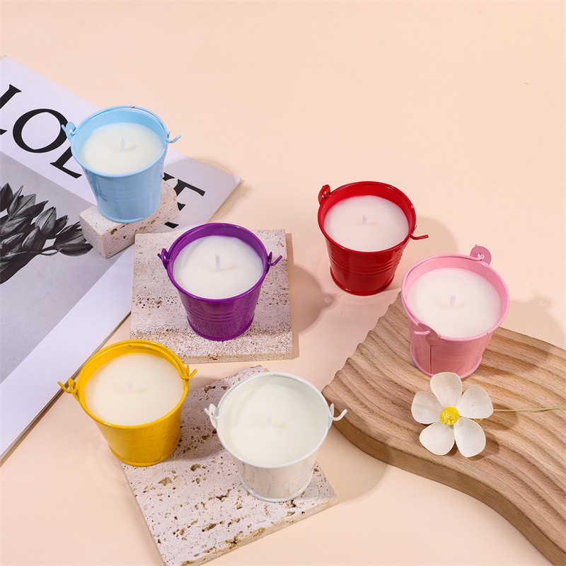 香型 | 栀子花 | | 货号 | 彩色小铁桶香薰蜡烛 |
