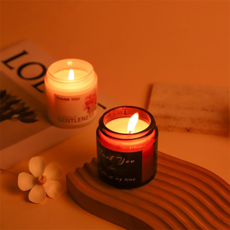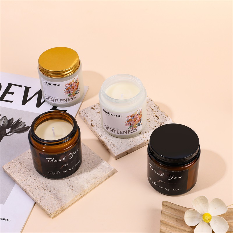高级感磨砂白香薰蜡烛小号100G植物蜡茶色杯伴手礼香氛蜡烛批发