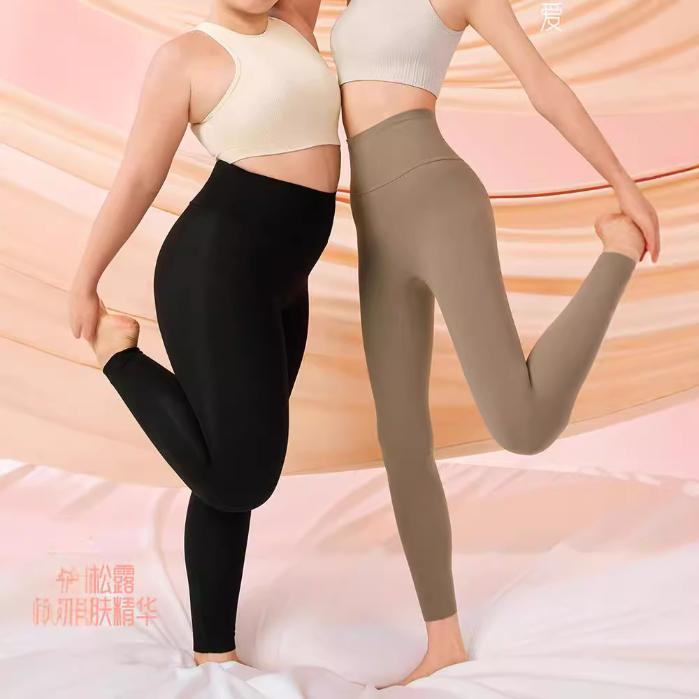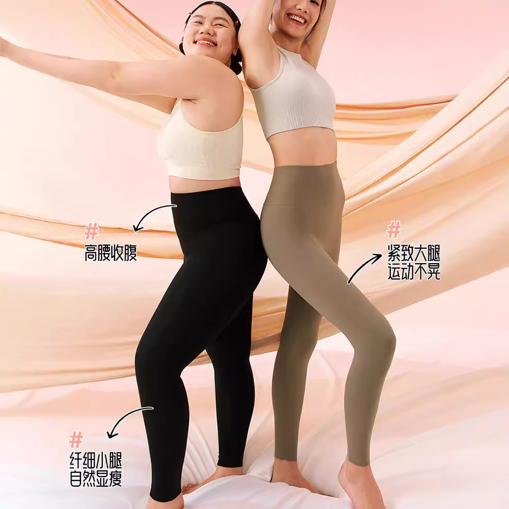秋冬新款磨毛加绒瑜伽裤哑光黑松露高腰提臀收腹裤打底紧身鲨鱼裤