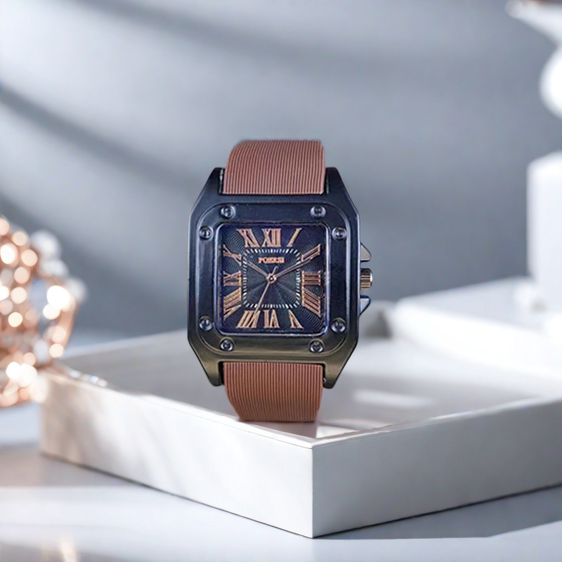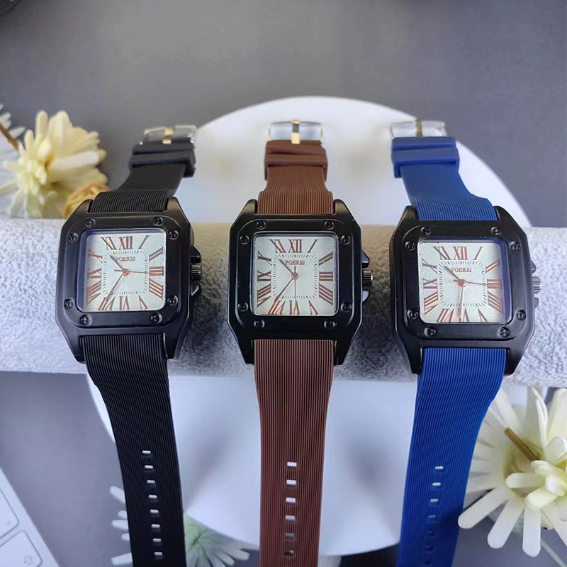 新款跨境商务时尚腕表欧美流行百搭方表小众简约高级感硅胶男表