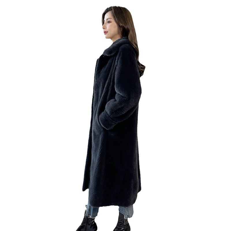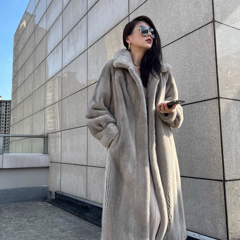 冬季新款水貂毛裘皮大衣 女款翻领整貂加长款时尚休闲皮草外套