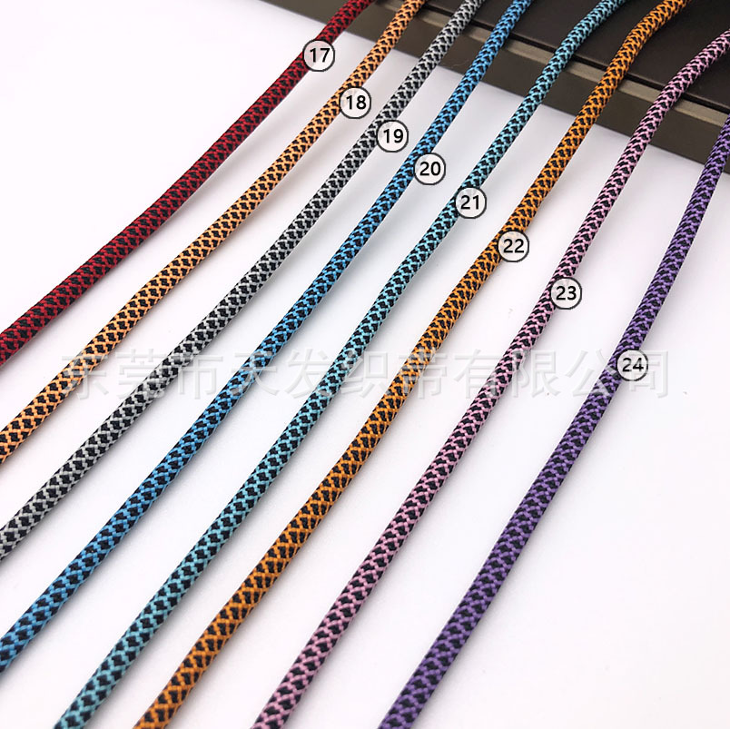 规格型号 | 22#橙色间黑网纹圆绳 | | 规格型号 | 23#粉红间黑网纹圆绳 |