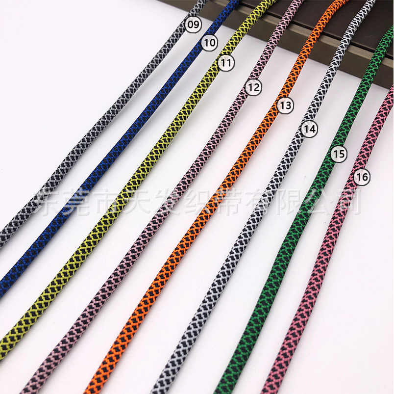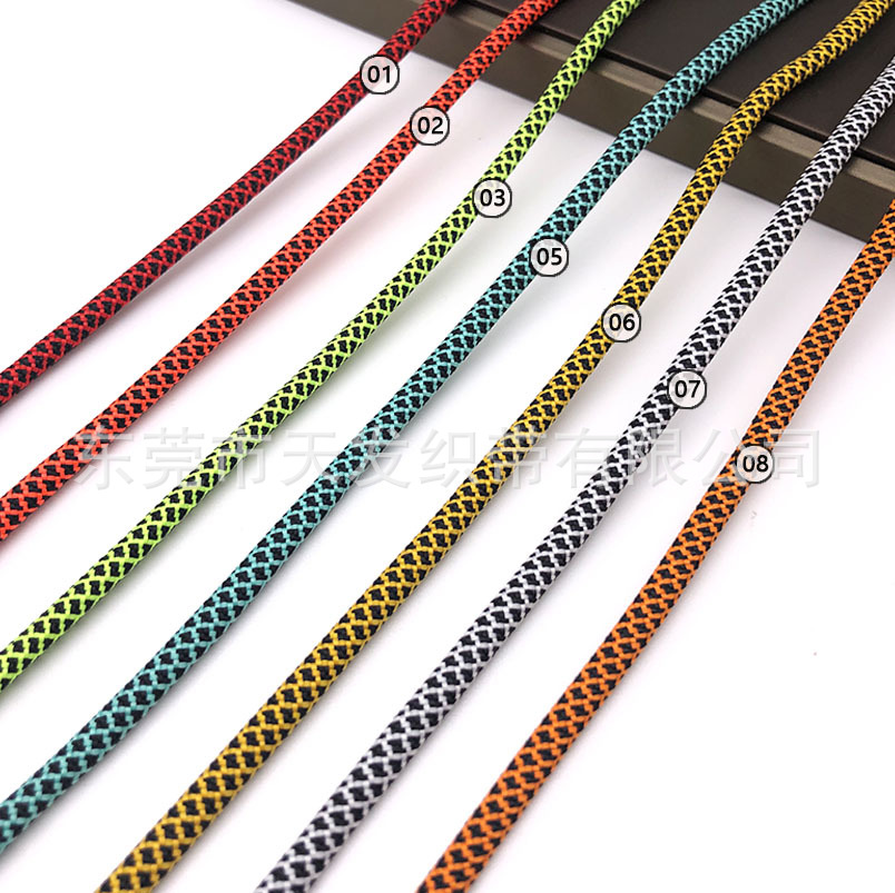 主要原料 | 涤纶 | | 规格型号 | 01#红间黑网纹圆绳 |