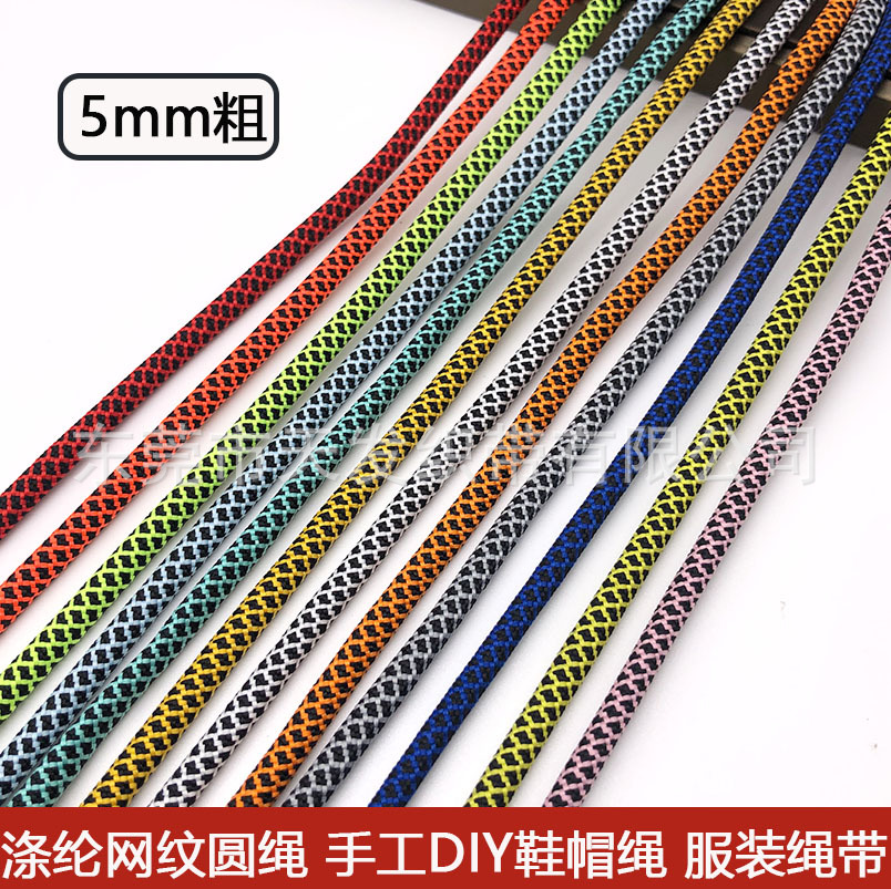 手工DIY包挂绳5mm涤纶包芯圆绳网纹间色圆绳挂件绳鞋帽绳带编织绳